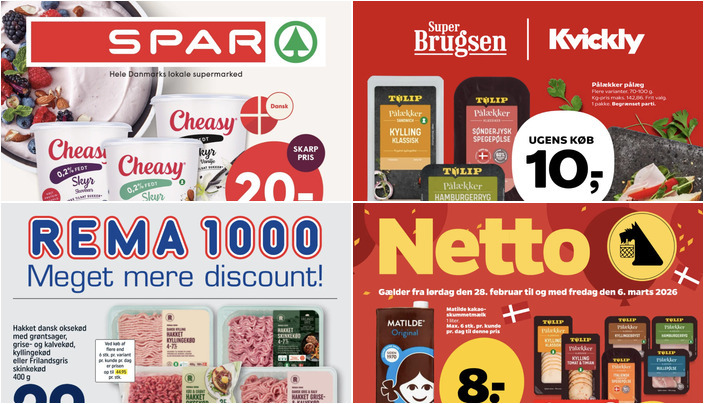 Hos SuperBrugsen og Kvickly kan du få Tulip pålæg i flere varianter til kun 10 kr. pr. pakke. Vægt mellem 70-100 g. Tilbuddet gælder fra fredag 27. februar til torsdag 5. marts.